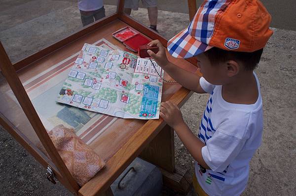 兩小都很努力的在按圖索驥找集章台蓋章。